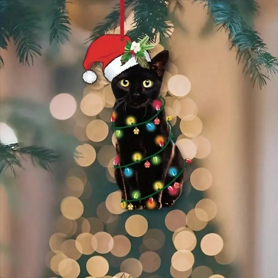 1pc Christmas Black Cat Acrylic 2d Tag Decoration Pendant For Room, Living Room, Kitchen, Outdoor, Garden, Christmas Tree Decorations