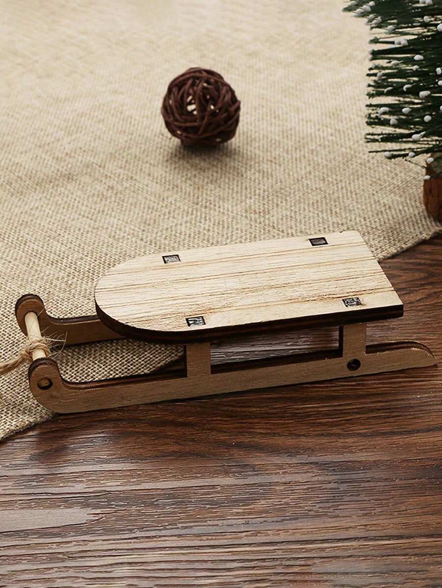 1pc Christmas Decoration, Wooden Sled For Home And Office Decoration, Personality Wooden Sled