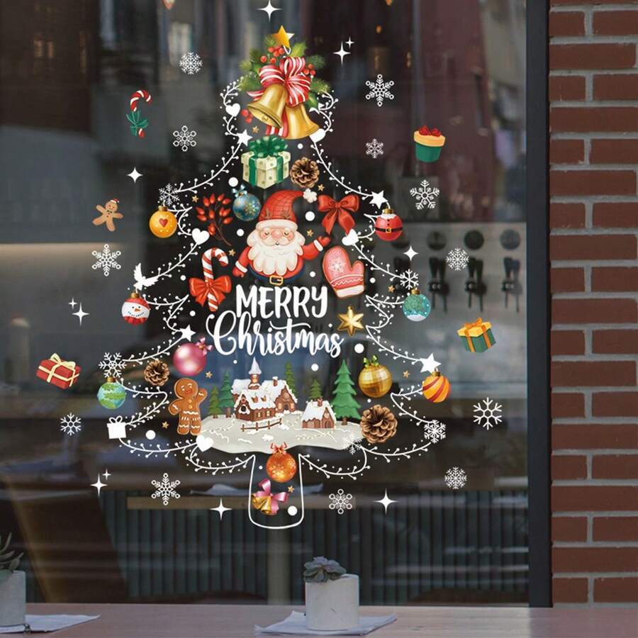 1pc Christmas Electrostatic Window Sticker, Christmas Tree Snowman Santa Claus Snowflake Pattern Glass Window Stickers, Bedroom Entryway Living Room Porch Home Decoration, Removable Stickers