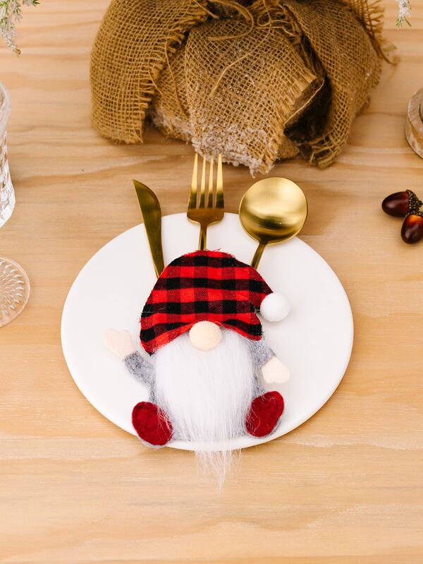 1pc Christmas Gnome Design Cutlery Cover Decoration