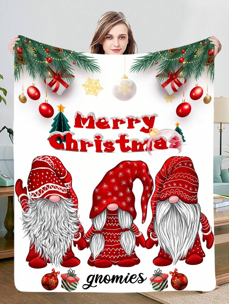 1pc Christmas Gnome Xmas Gifts Throw Blanket Plush Microfiber Flannel Fleece Blanket for Bed Sofa Couch Camping Travel