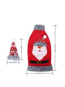 1pc Christmas Grey Velvet Bag With Hood And Burlap Rim, Fits Wine Bottle, Red