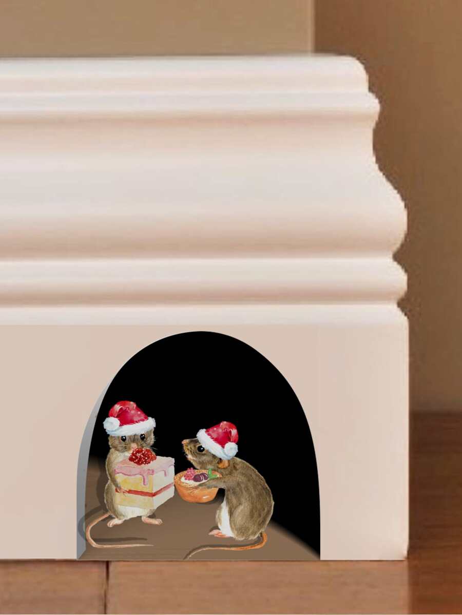 1pc Christmas Hat & Mouse Pattern Wall Sticker