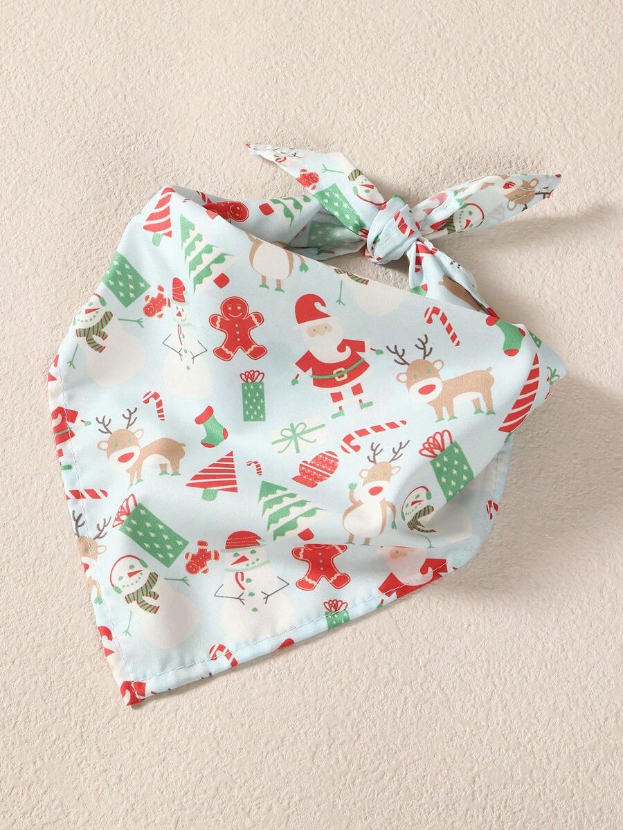 1pc Christmas Printed Pet Drool Bib, Light Blue