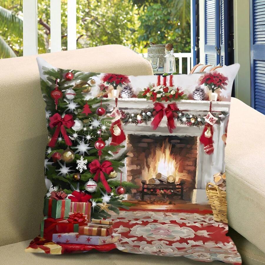 1pc Christmas Santa Claus With Gifts Printed Pillow Cover For Home Decoration, Soft Peach Skin Cushion Cover For Office Decor (pillow Core Not Included)