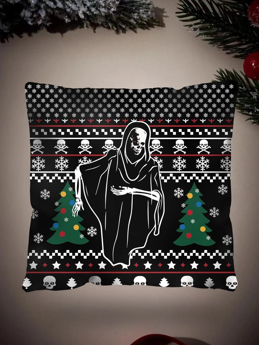 ROMWE 1pc Christmas Skeleton & Tree Print Cushion Cover Without Filler