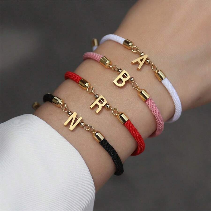 1pc Classic Stainless Steel A-Z Initial Rope Bracelet Women For Party