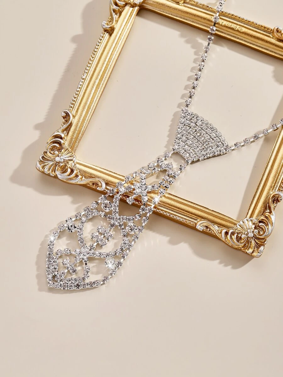 1pc Claw Chain With Rhinestones Inlaid Tie Shaped Necklace