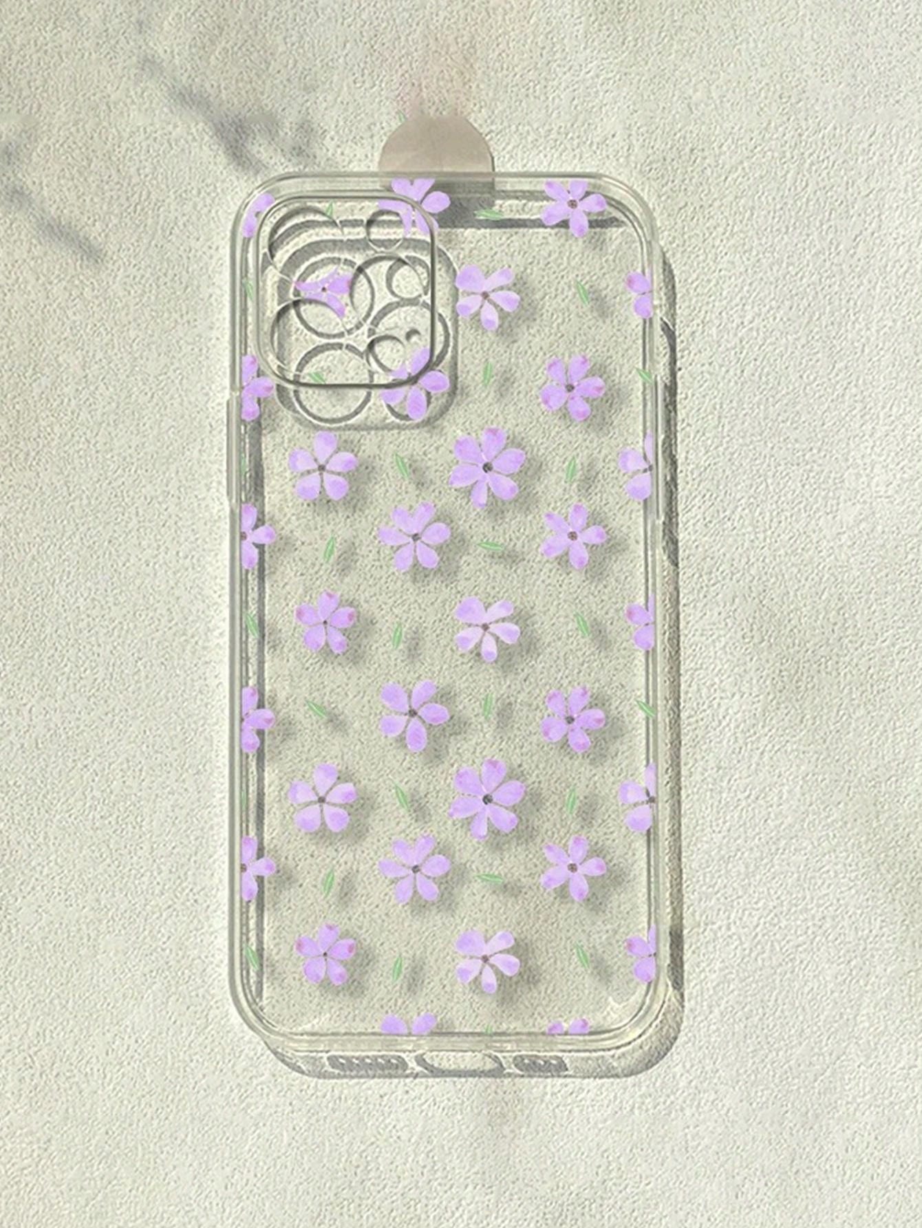1pc Clear Grid Style Anti-Drop Ins Purple Flower Phone Case For Iphone