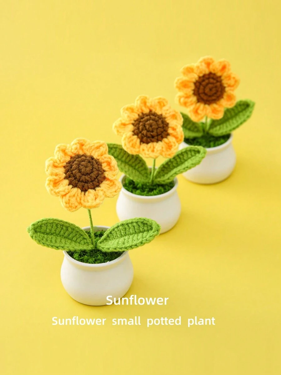 1pc Colorful Hand-woven Sunflower Potted Plant For Diy Craft, Knitting, Simulation Flower Decoration, Gift