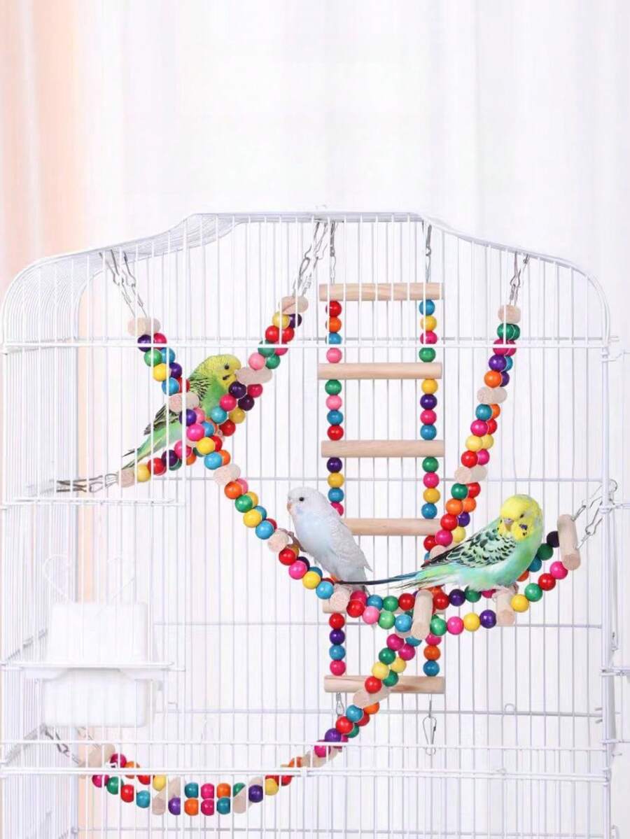 1pc Colorful Hanging Ring, Ladder And Swings With Natural Wood, Tiger Skin, Phoenix And Peony Patterns, Suitable For Parrots And Other Birds, Chewing, Climbing And Playing