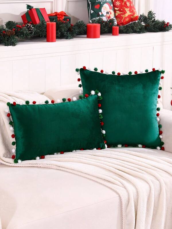 1pc Colorful Pom Pom Ball Christmas Pillowcase