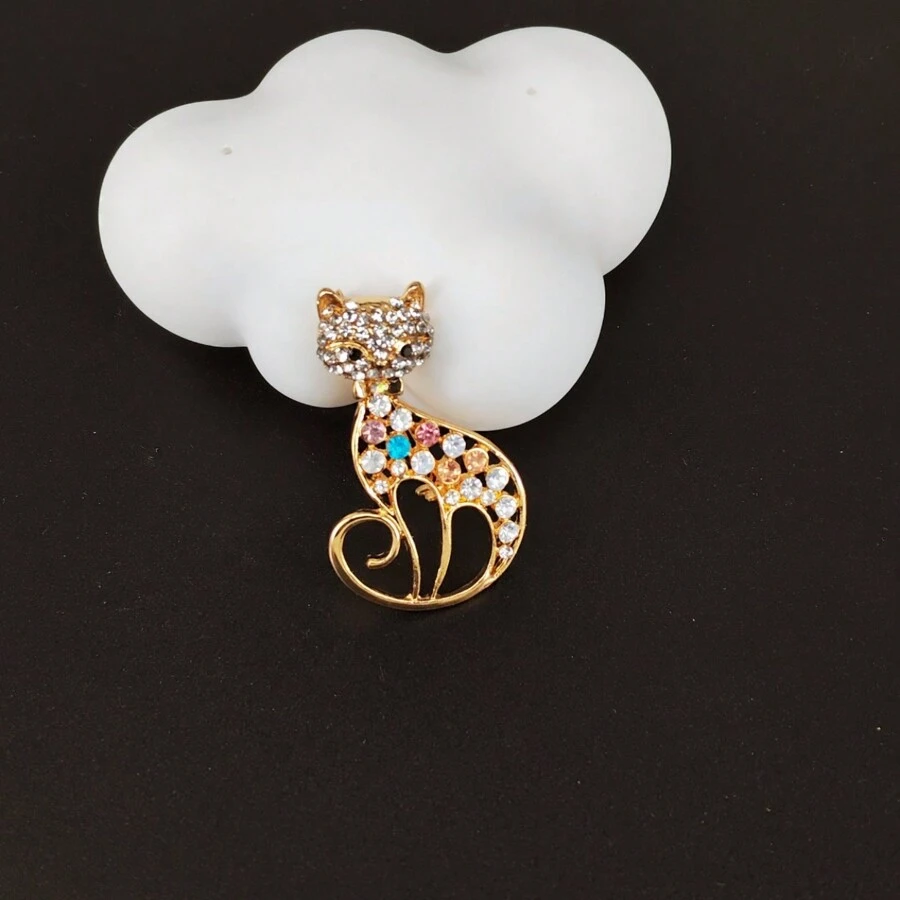 1pc Colorful Rhinestone Decor Cat Shaped Brooch For Women