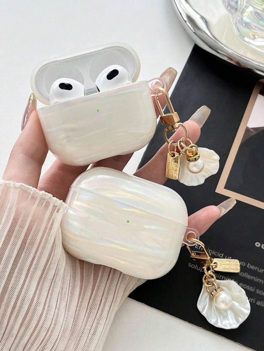 1pc Colorful Shell Pattern + Pearl Hanging Chain IMD Shockproof Earphone Case Compatible With Apple 2/3/4/Pro/Pro 2/Pro 3 Earphone Case