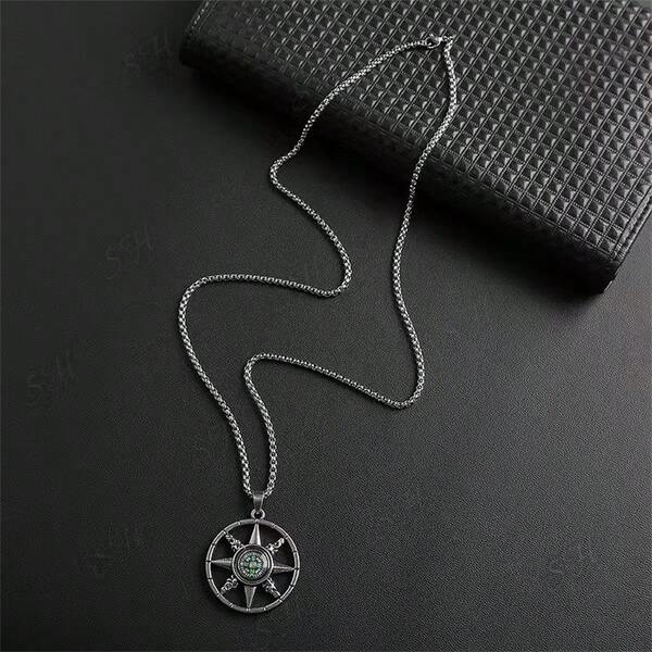1pc Compass Pendant Necklace For Men & Women, Titanium Steel Sweater Chain Hip Hop Accessory