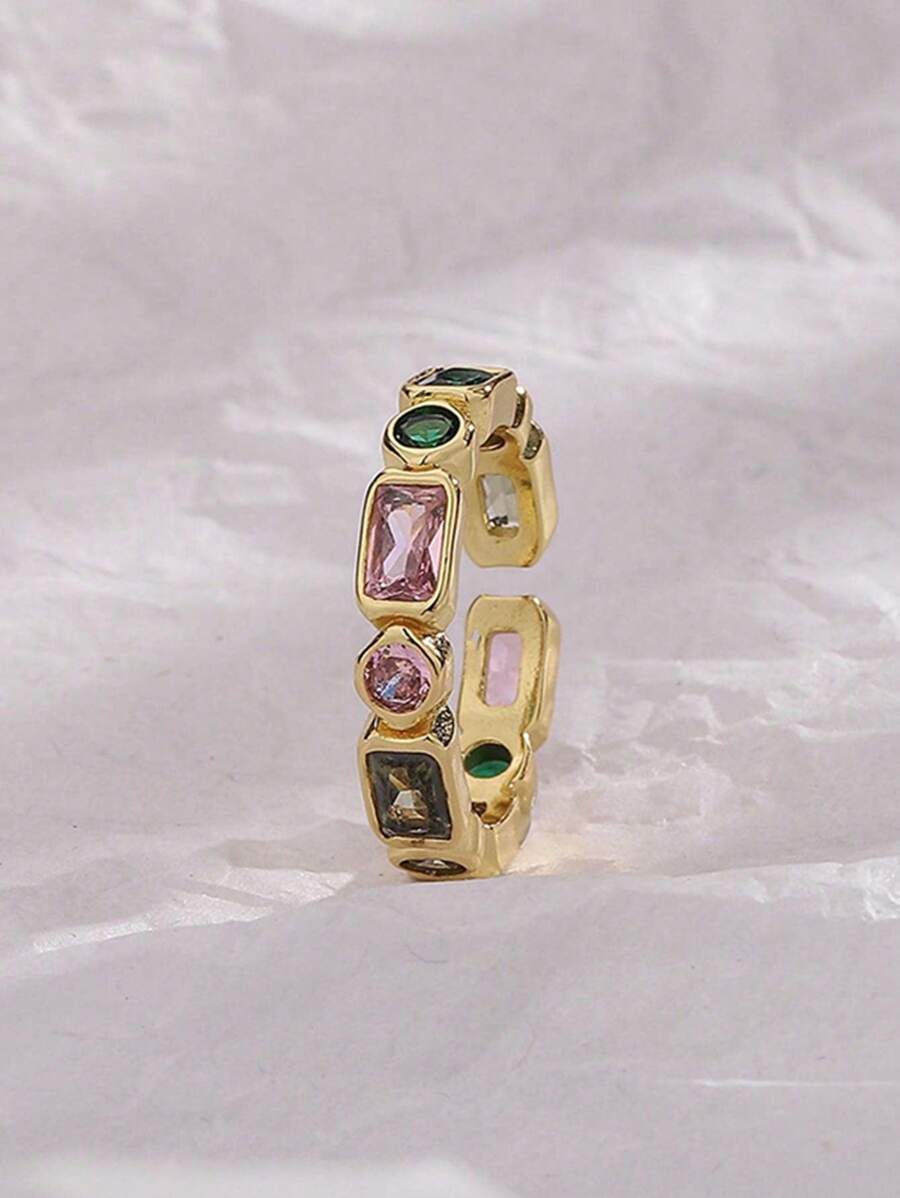 1pc Copper Alloy Two-tone Geometric Square Diamond Decor Ring For Women