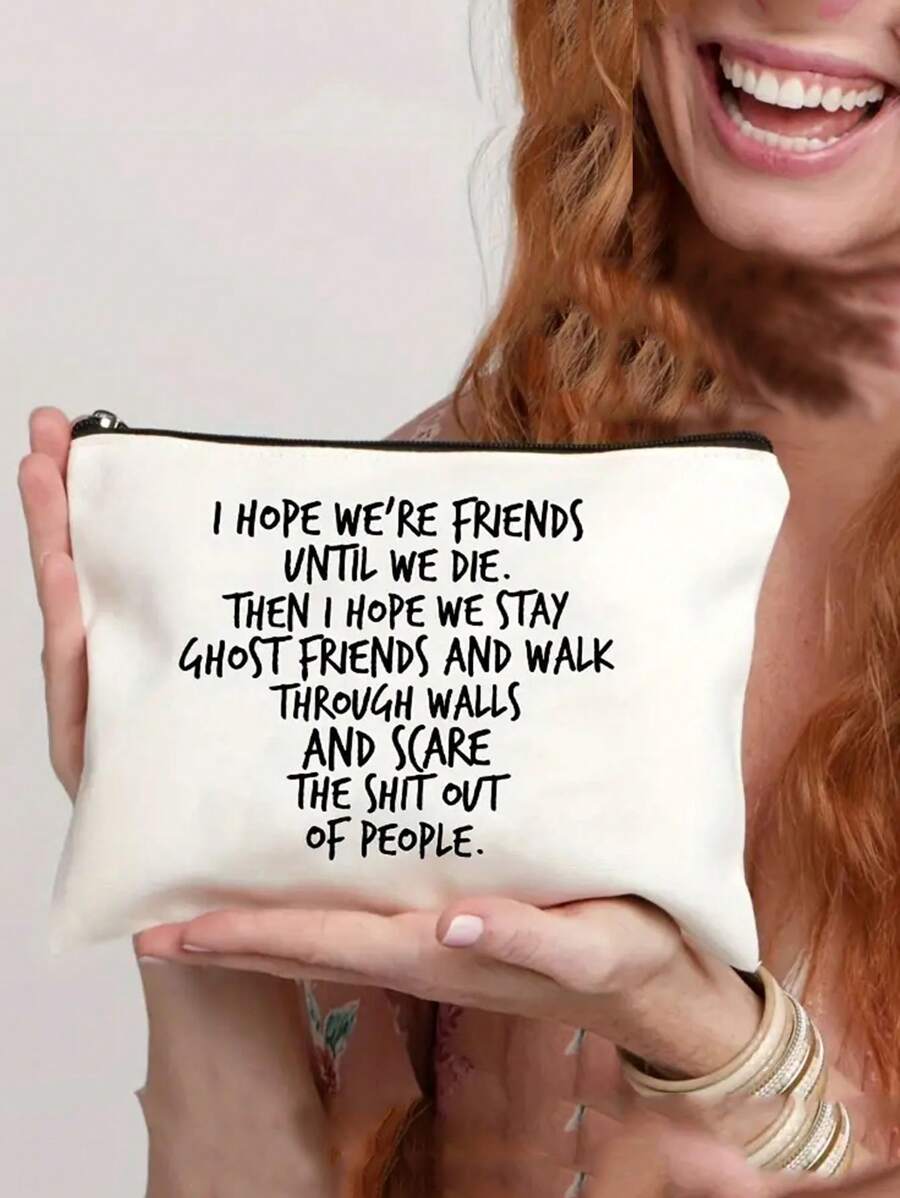 1pc Cosmetic Bag,Makeup Bag Best Friend Birthday Gift For Her, Toiletries Storage Case,Bridesmaid Gift,Ghost Friends Cosmetic Bag, Gift For Her,Friendship Gifts For Women,Personalised Gifts For Her,Letter Print Cosmetics Bag Makeup Bag Makeup Storage Bag Cosmetic Bag Beauty Bag,Travel Makeup Organizer Portable Storage Bag,Travel Bag Toiletry Case Multifunction Pouch Gifts,For Travel Business,Vacation,Daily