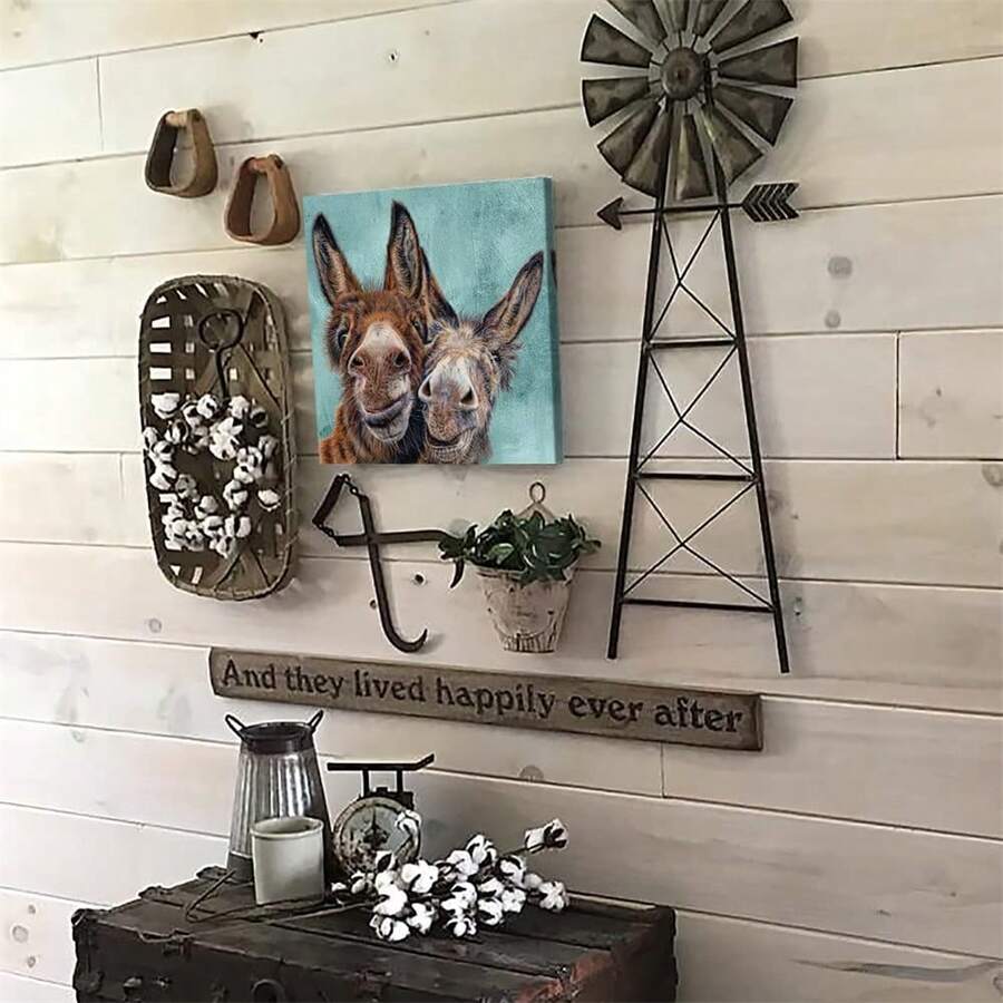 1pc Country Farmhouse Donkey Canvas Pictures Funny Animal Wall Decor Posters for Bedroom Office Rustic Decoration,No Frame