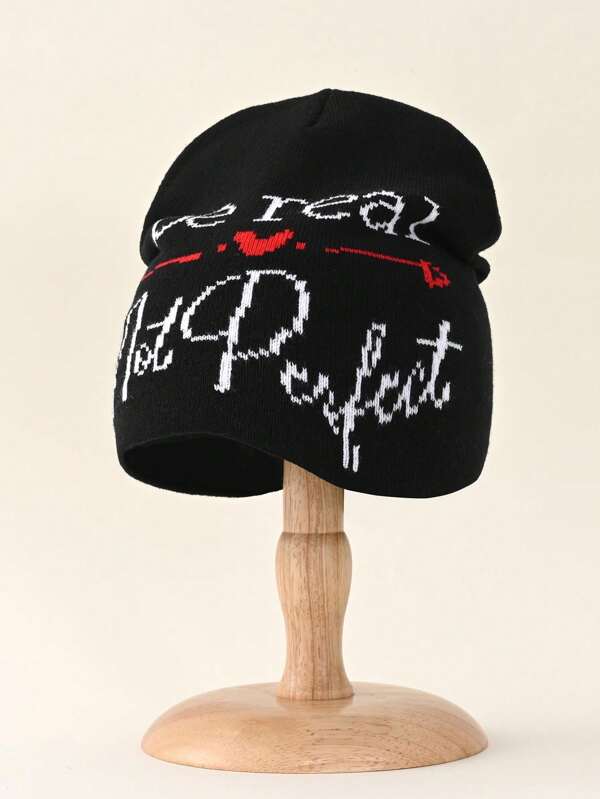 1pc Couple Hat Be Real Not Perfect Letter & Heart Printed Knit Beanie Hat, Hip Hop Skullcap For Streetwear, Fashionable And Unisex, Suitable For Casual, Outdoor Activities, Travel And Shopping