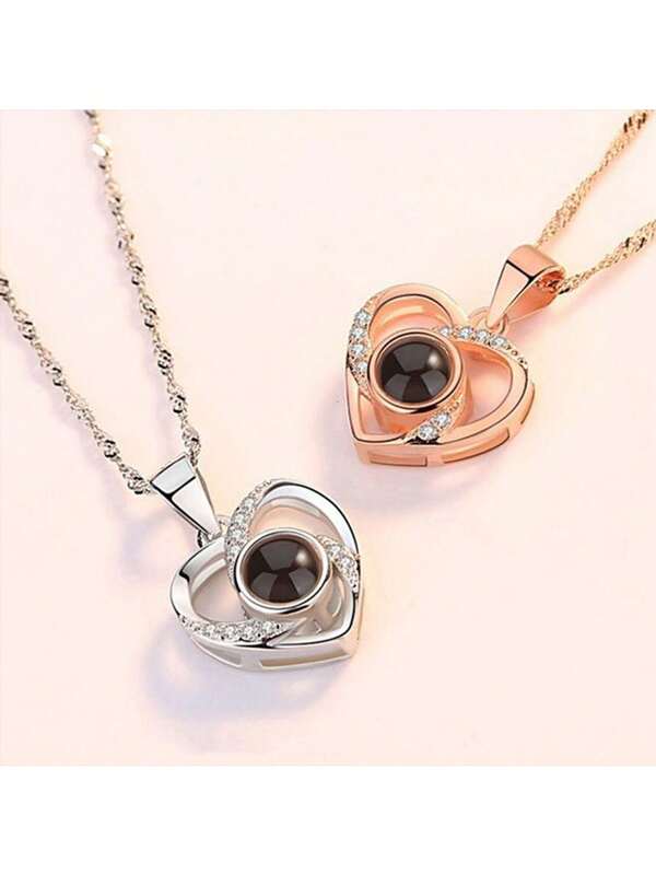 1pc Couple Silver 100 Languages I Love You Projection Heart Shaped Pendant Necklace, Versatile Style For Everyday Wear