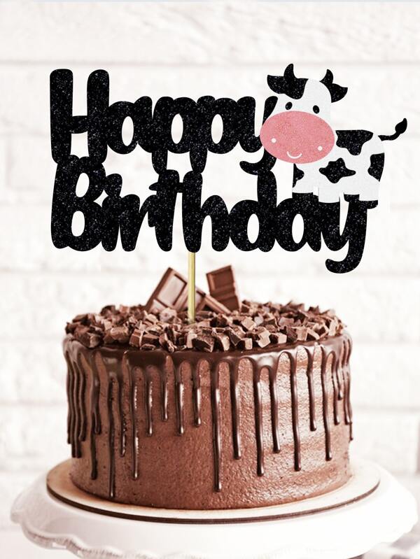 1pc Cow & Slogan Graphic Cake Topper, Paper Cake Top Decoration For Birthday Party