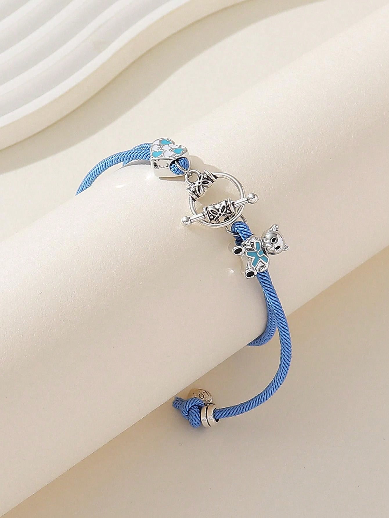 1pc Creative And Cute Adjustable Bracelet For Women And Girls, Featuring Ins Style Designs Such As Lettering, Love, Heart, Bear, Etc. Suitable For Holidays, Parties, And Everyday Wear.