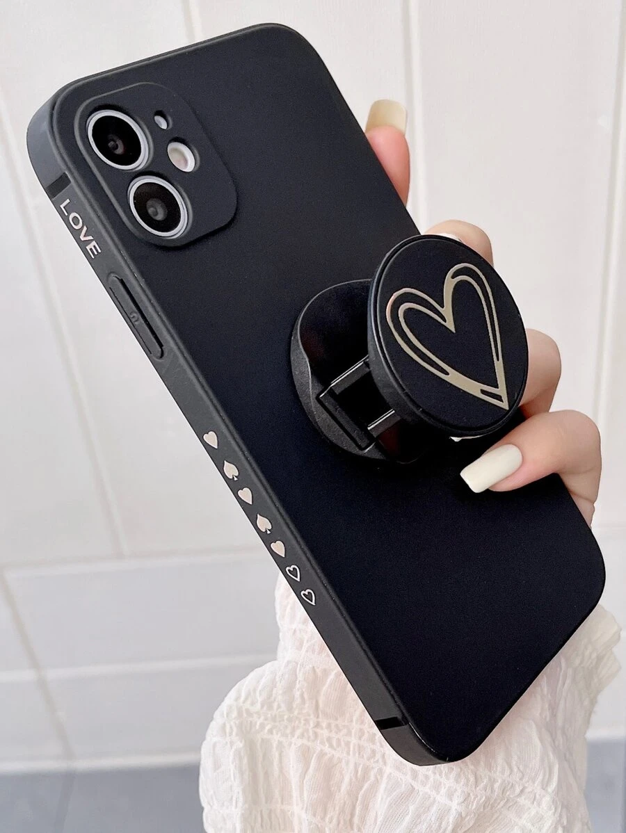 1pc Creative Cartoon Romantic Heart Shaped Folding Pop-Up Stand Anti-Drop Anti-Slip Straight Edge Phone Case For Samsung Iphone Redmi