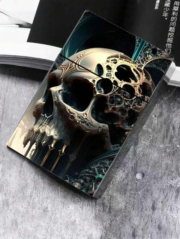 1pc Creative Diy Cartoon Skull Design Crushproof Flip Top Automatic Cigarette Case
