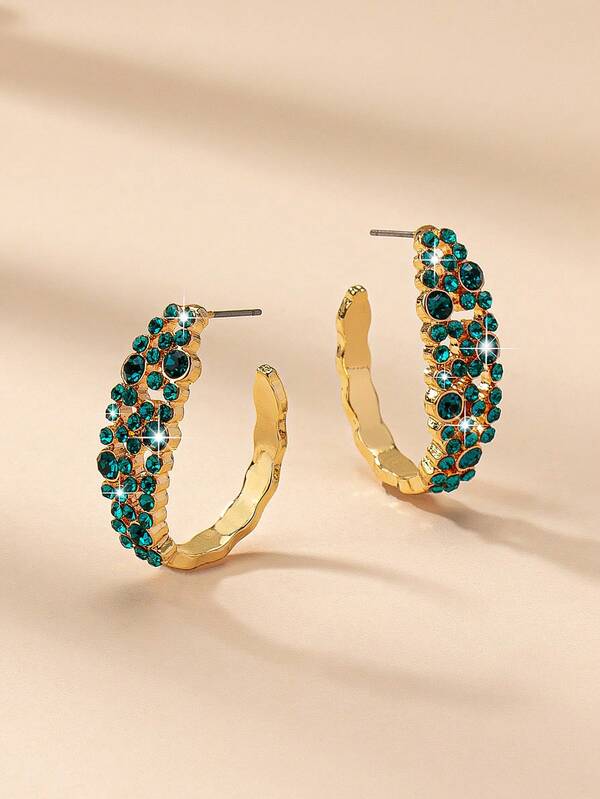 1pc Cross-Border Popular Green Full Diamond & Emerald & U-Shaped Personality Earrings