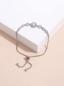 1pc Cubic Zirconia Decor Bracelet, Stainless Steel Jewelry