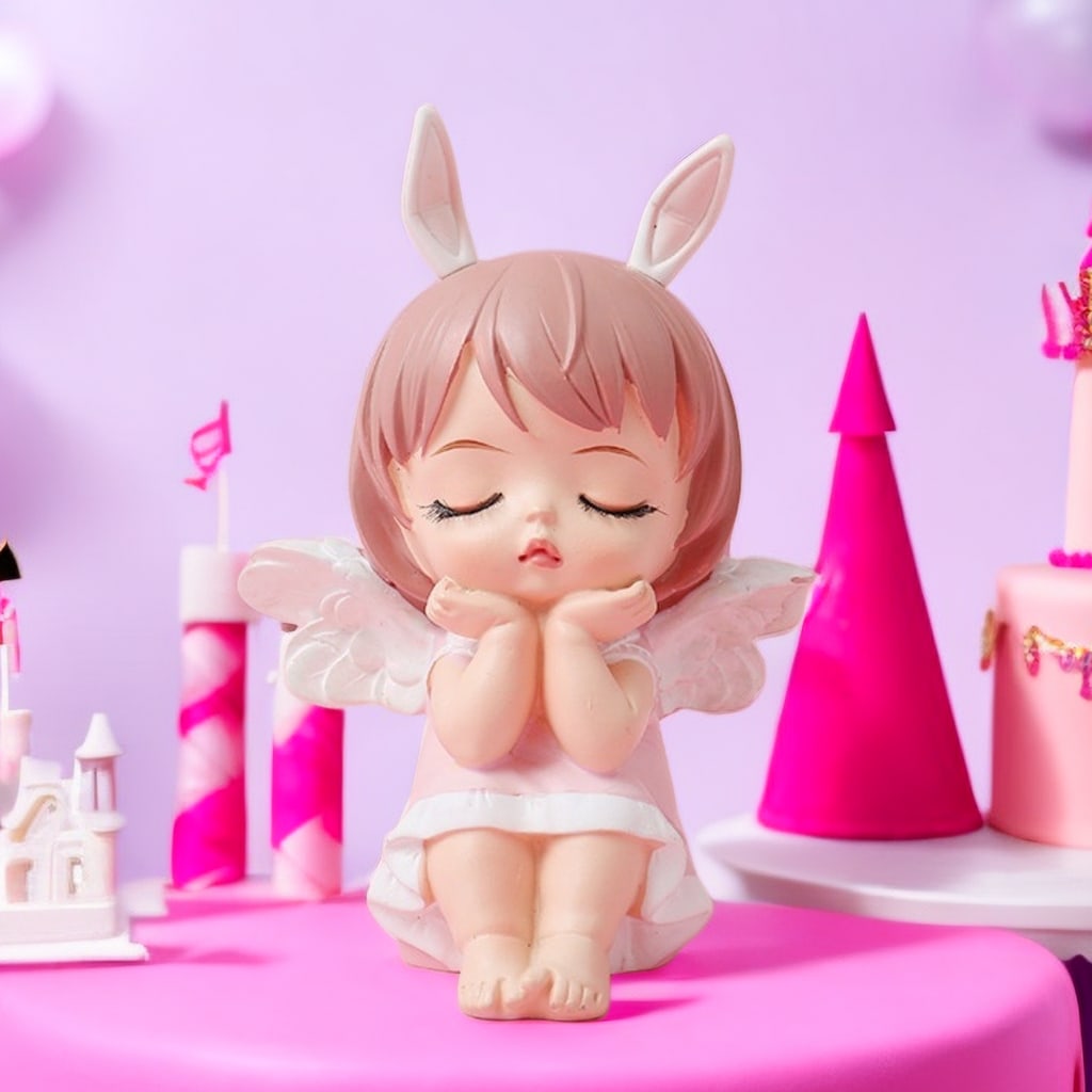 1pc Cute Angel In Thoughtful Pose Decorative Resin Car & Cake Figure Sculpture For Birthday Or Graduation Party