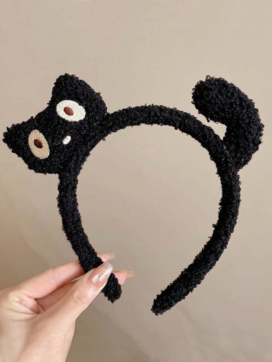 1pc Cute Cartoon Cat Plush Wash Face Headband For Women, Autumn & Winter