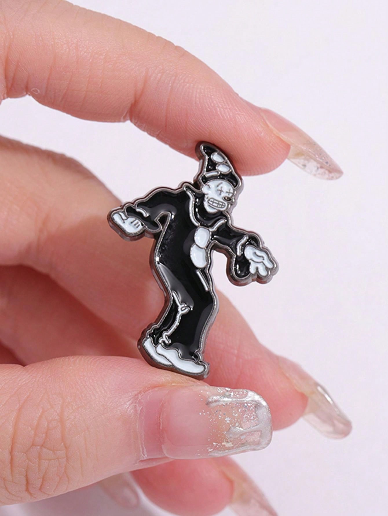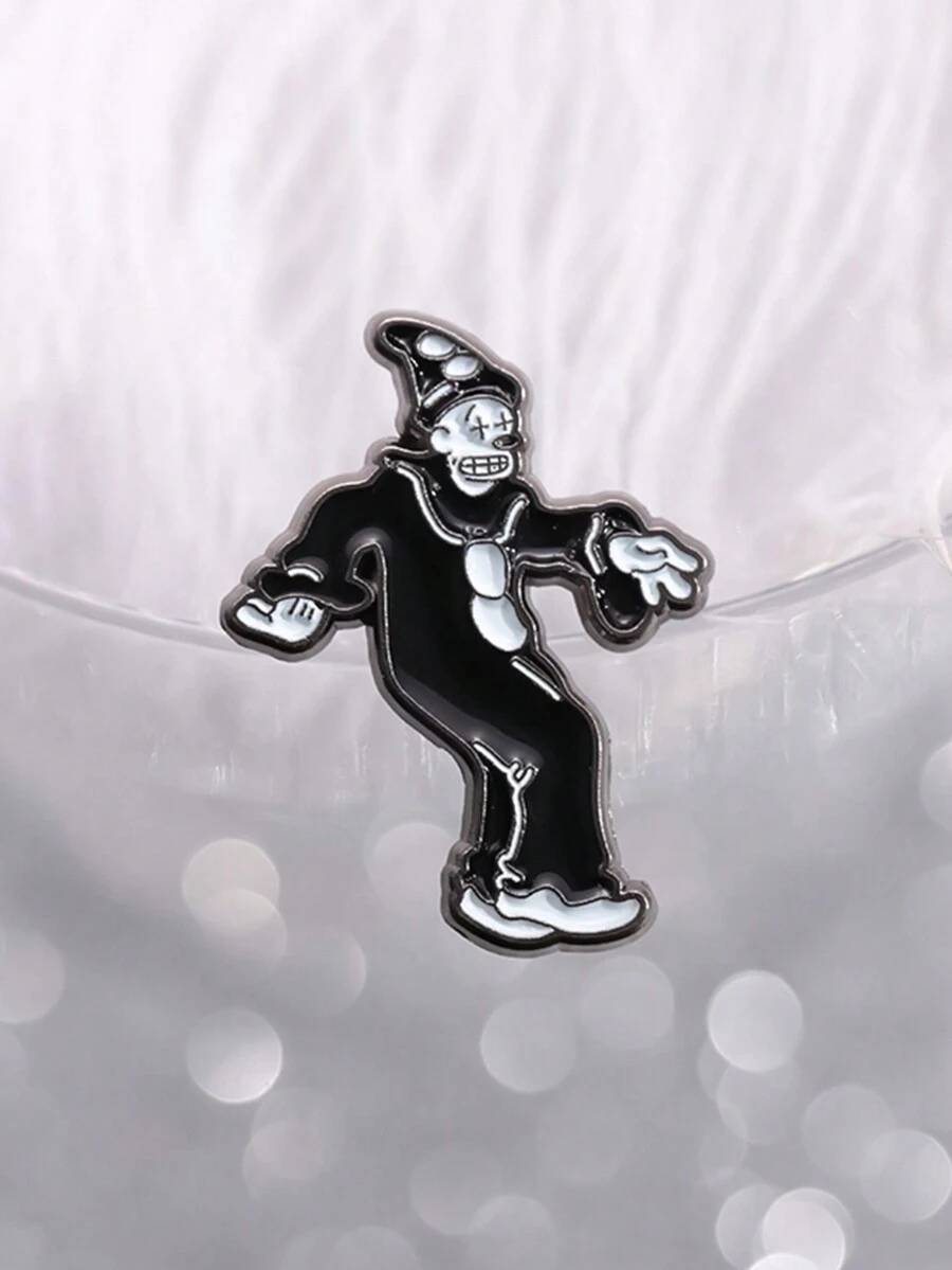 1pc Cute Cartoon Circus Black & White Clown Enamel Metal Brooch, Gothic Style Decorative Pin For Backpack, Clothes, Halloween Jewelry Accessory