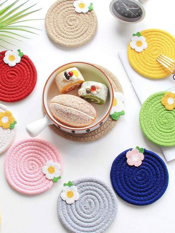 1pc Cute Floral Pattern Coaster, Woven Rope Minimalist Heat-Resistant Mat Randomly Sent
