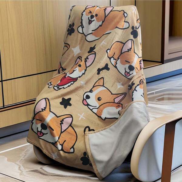 1pc Cute Printed Cartoon Animal Pattern Flannel Blanket, Soft And Warm Suitable For Home, Office And All Seasons