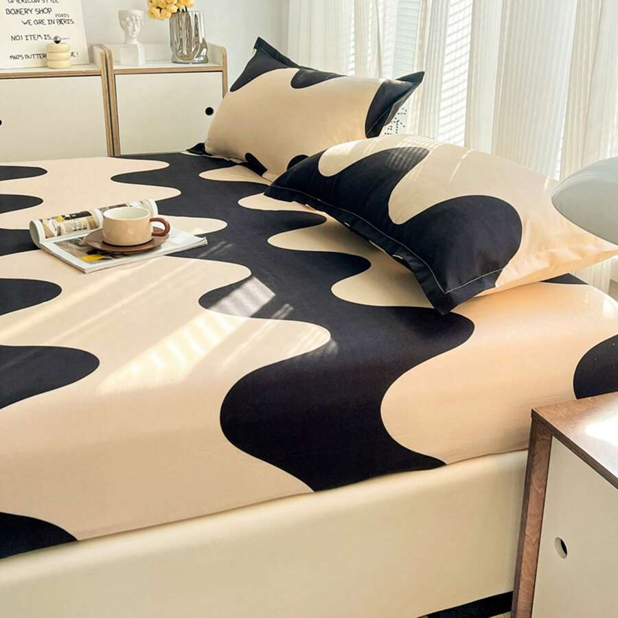 1pc Cute Printed Flannel Bed Sheet, Polyester Fiber Machine Washable & Breathable & Antibacterial Mattress Cover Suitable For Bedroom, Guest Room, Four Seasons