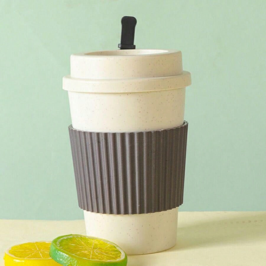 1pc Dark Brown Simple Wheat Straw Portable Coffee Cup With Lid