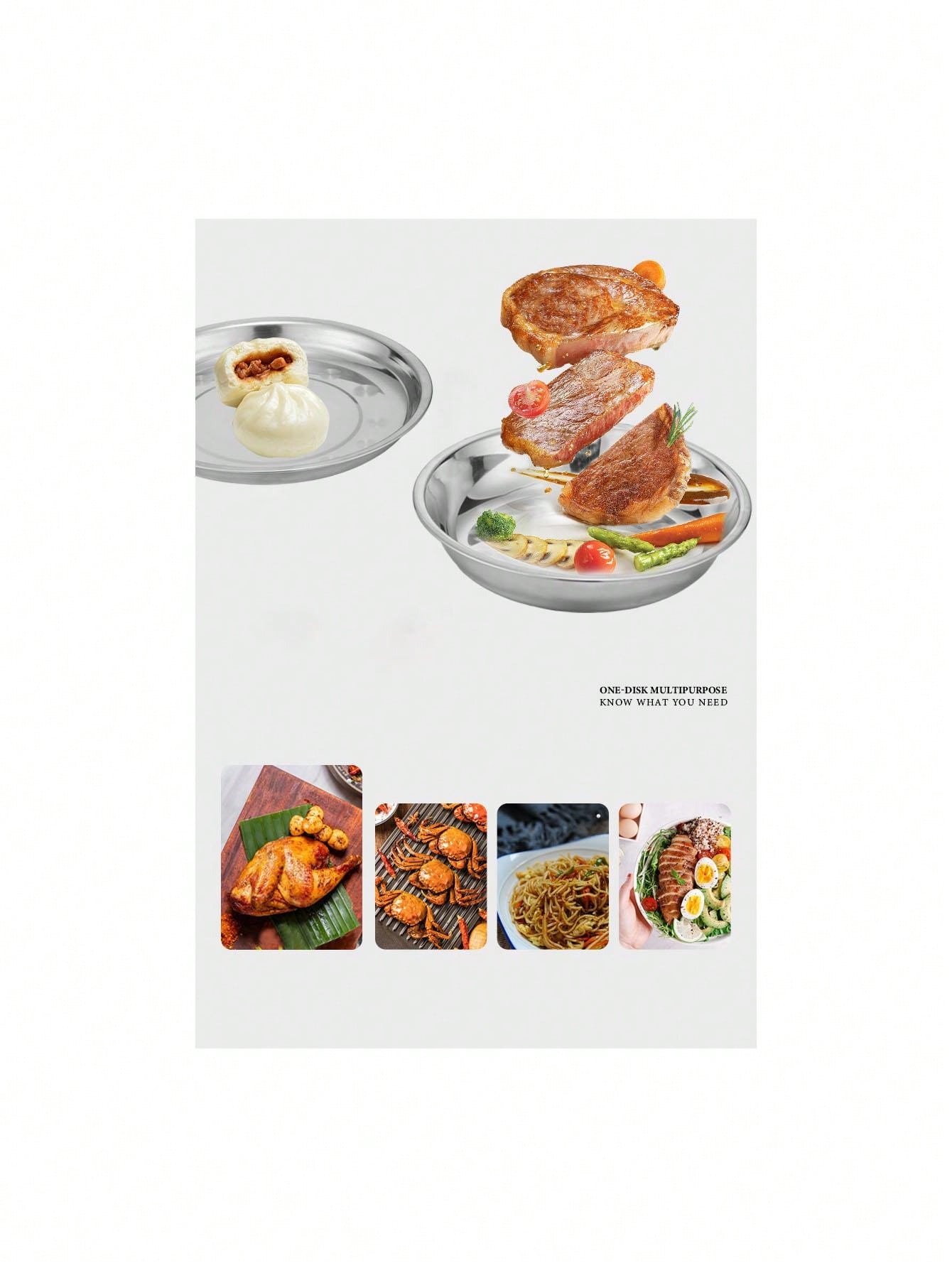 1pc Deepening Stainless Steel Plate Multi-functional Round Plate For Gathering, Camping, Baking Cake Or Steak, Can Be Used On Induction Cooker