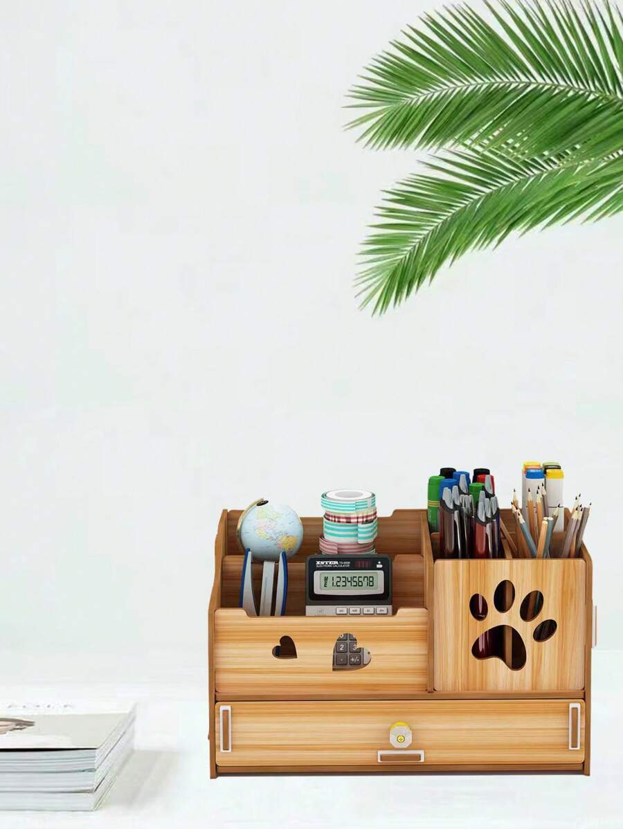 1pc Desk Organizer Desktop Organizer With 6 Compartments And 1 Drawer Multi-Functional Pencil Holder For Desk Stationary Organizer Desktop Storage Desk Accessories For Office Supplies Home School