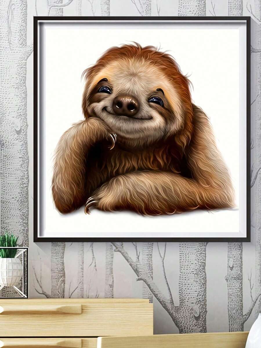1pc Diamond Painting Sloth Picture, 5d Diamond Painting Cross Stitch Kit, Diamond Art Decoration Gift, Mosaic Picture Suitable For Adult Beginner, Diamond Embroidery Kit Round Full Drill Diamond Dotz Diy, Birthday Gift, Great For Home Decoration And Room Wall Décor 30x30cm/20x20cm