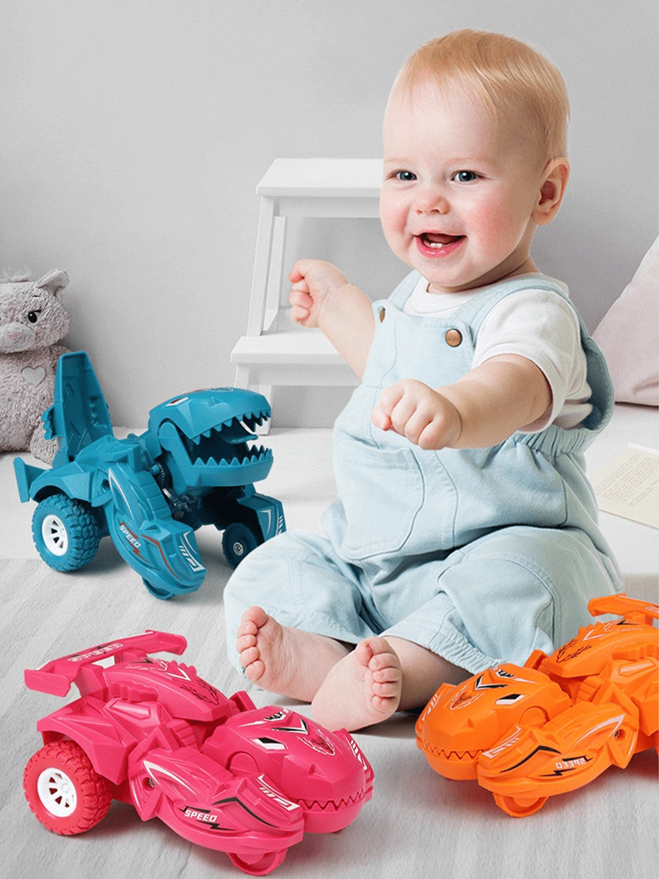 1pc Dinosaur Model Toy Car With Realistic Design, 4 Color Options, Transformable Into Cartoon Dinosaur, Anti-Collision Design, 360-Degree Rotation, Great Gift For Halloween, Christmas And Birthday Parties