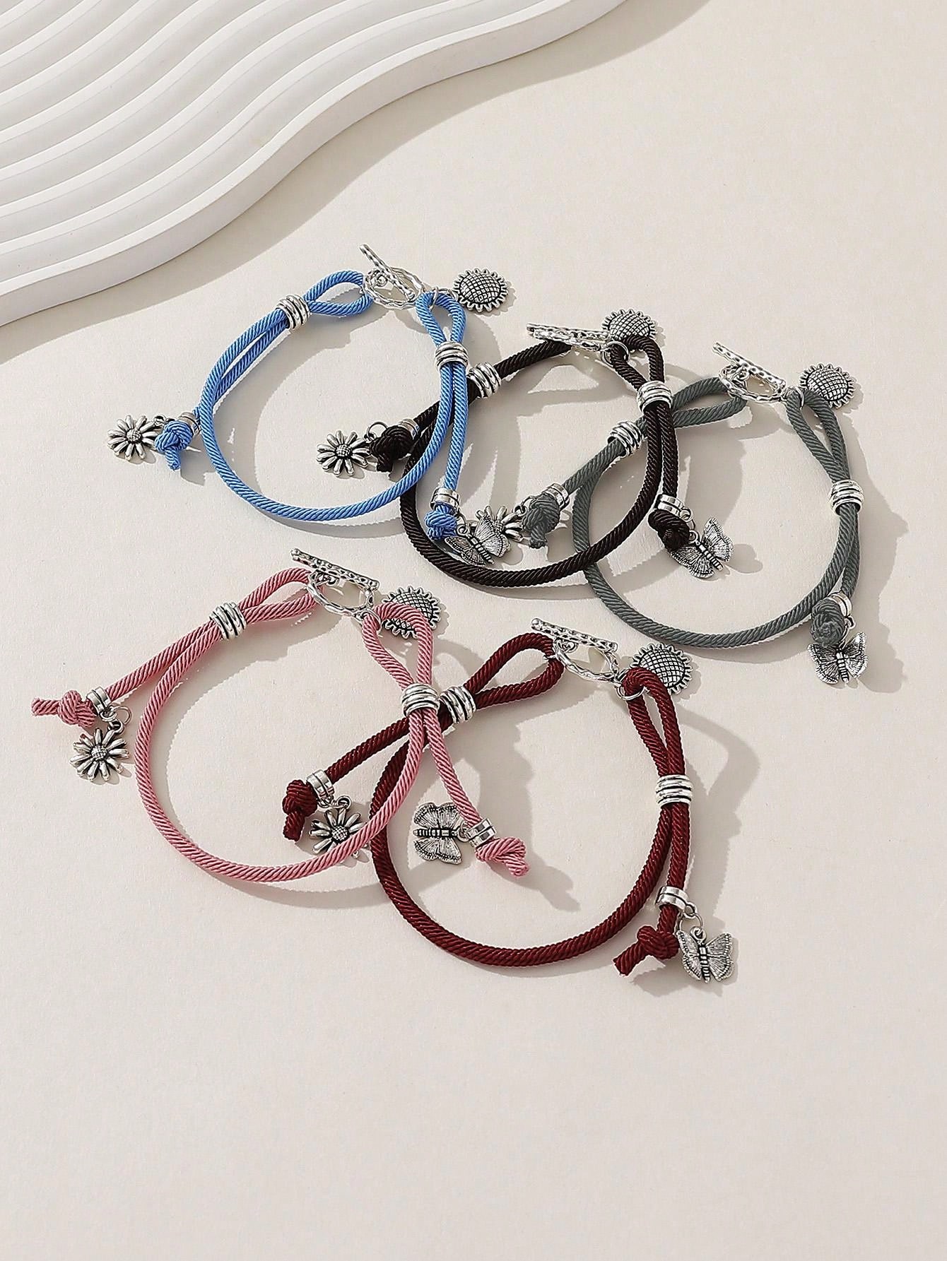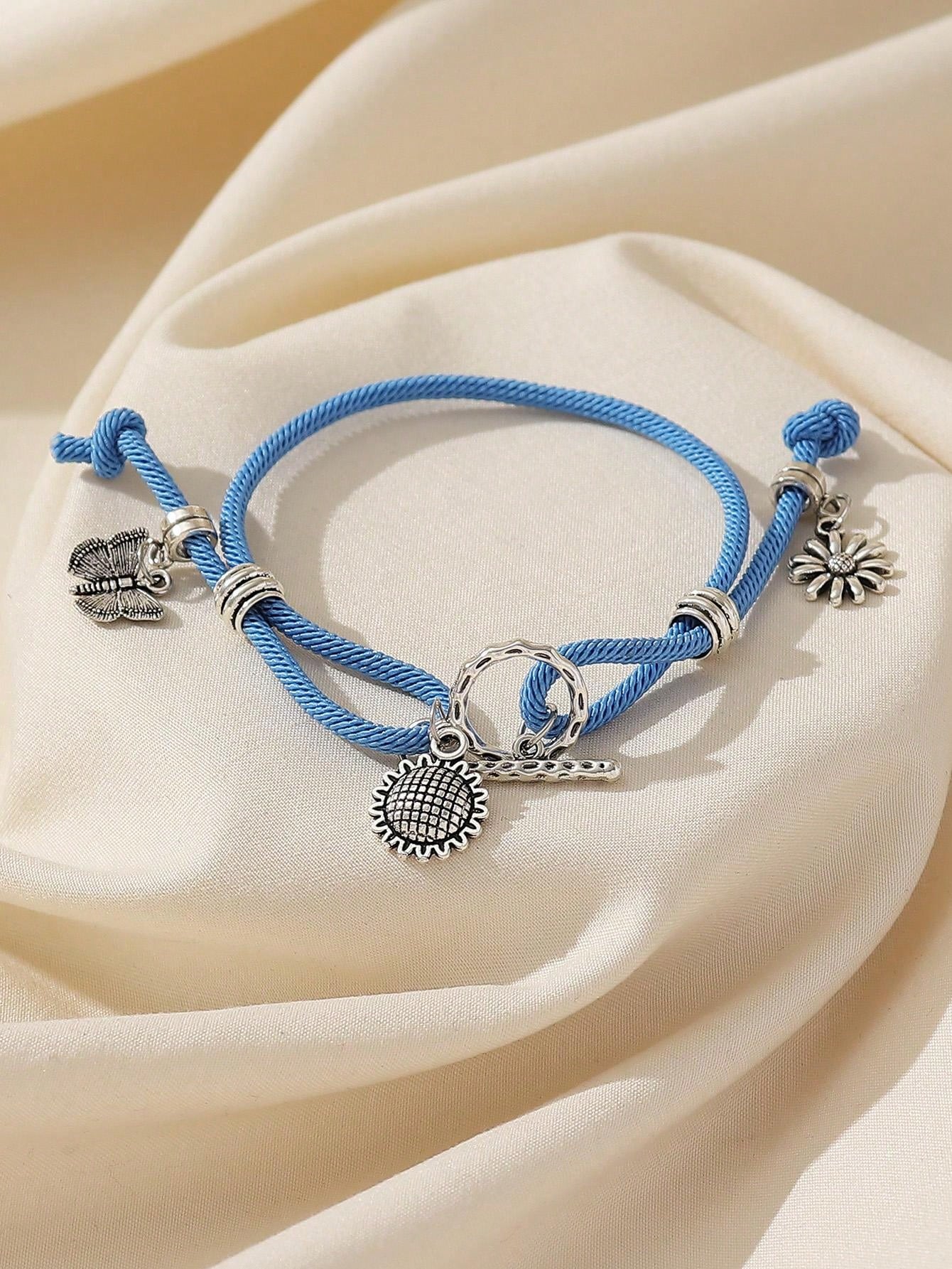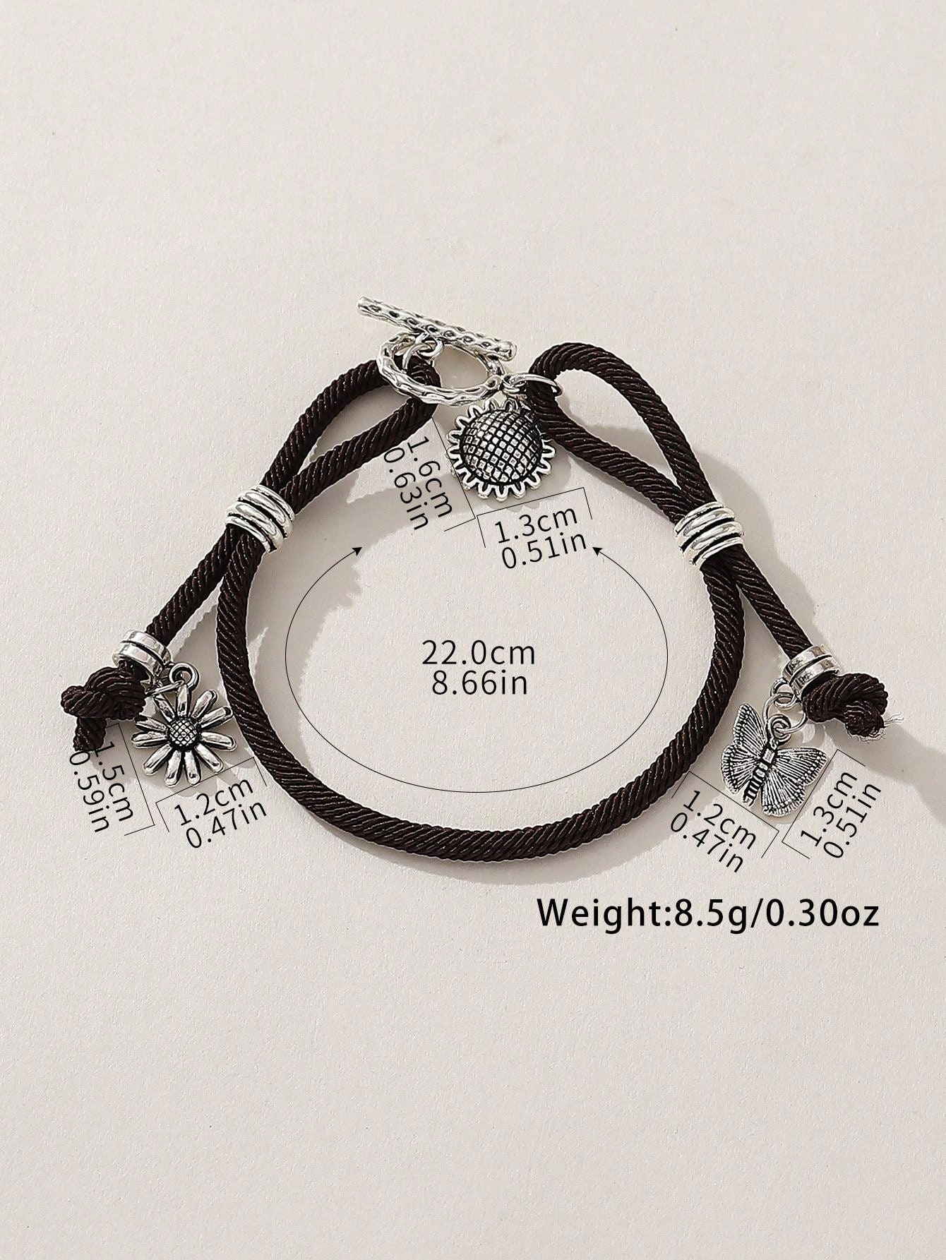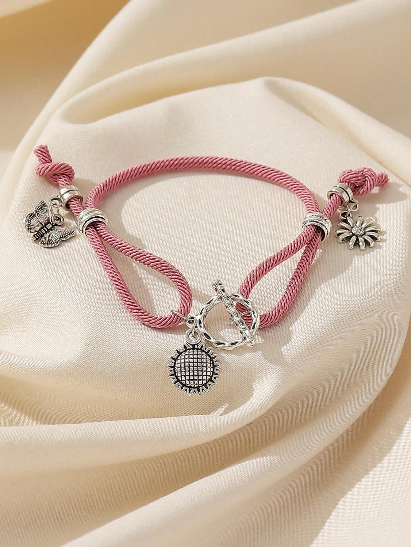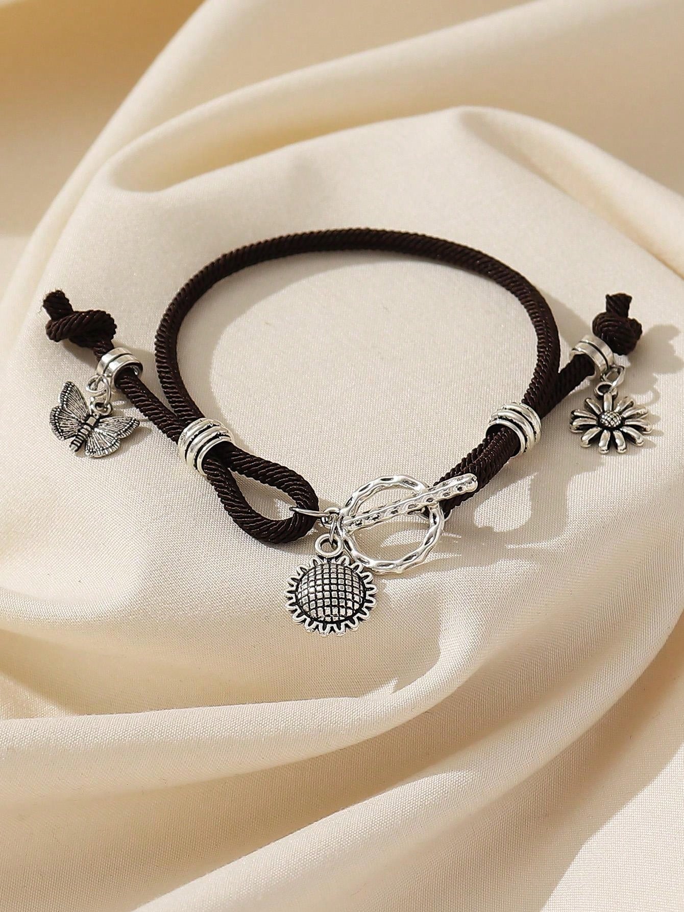 1pc Diy Fashionable Countryside Style Sunflower Butterfly Decor Pendant Bracelet Handmade Couple Bracelet Suitable For Valentine's Day, Date, Party, Nightclub, Daily Wear