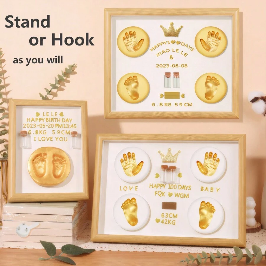1pc Diy Newborn Baby Hand & Foot Print Frame With Umbilical Cord & Hair Storage Compartment, Soft & Durable Clay, Multiple Sizes For Newborn Gift & Memory Keeping