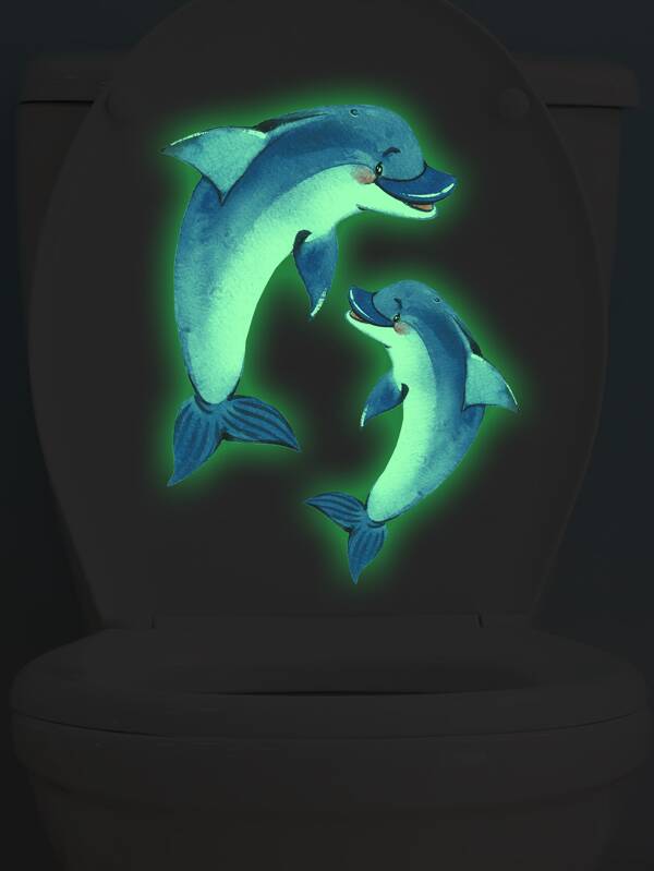 1pc Dolphin Pattern Glow In The Dark Toilet Lid Decal