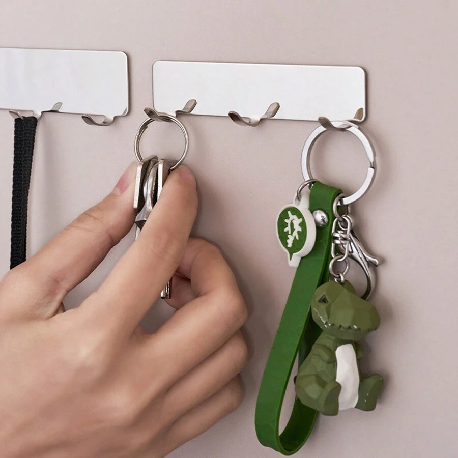 1pc Door Back Hooks For Keys & Clothes - 3/5 Hooks Self Adhesive Stainless Steel Wall Hanger