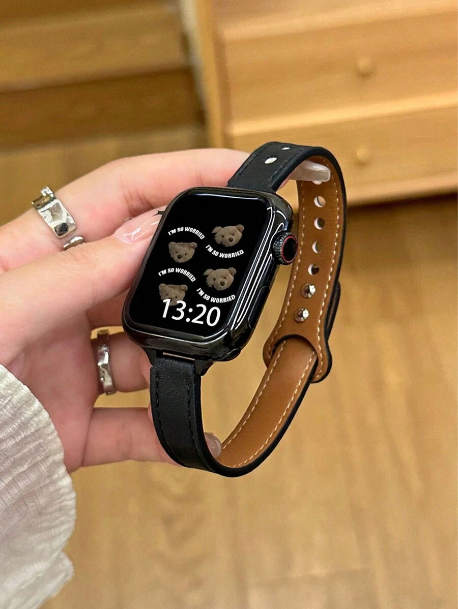 1pc Double Buckle Ultra-fiber Leather Watch Band Compatible With Apple Watch 38/40/41/42/44/45/49mm Ultra/se/8/7/6/5/4/3/2/1/9