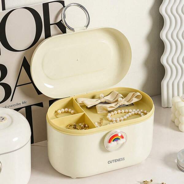 1pc Double-Layer Hair Accessories Storage Box With Handle, Hair Clip, Headband, Hair Tie, Jewelry Organizer Case