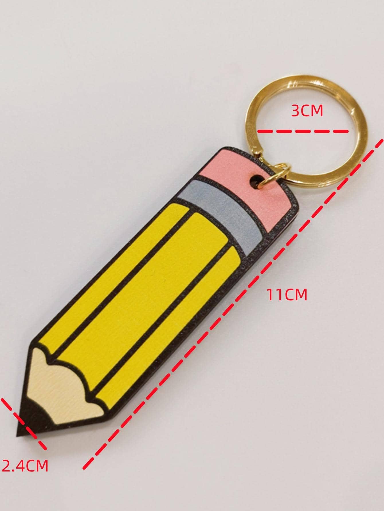 1pc Double-sided Wooden Rainbow Pencil Keychain Graduation And Back-to-school Season Student Teacher Key Chain Keyring Hanging Decor