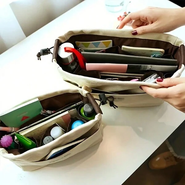 1pc Drawstring Canvas Storage Bag With Multiple Pockets And Internal Compartment, Portable Travel Organizer, Minimalist And Fashionable, Large Capacity Multifunctional Storage Bag
