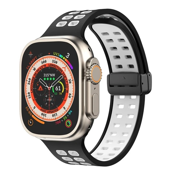 1pc Dual Color Breathable Magnetic Fold-over Clasp Compatible Apple Watch Silicone Band